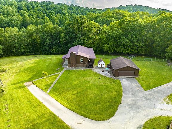 FARM LIVING IS THE LIFE FOR ME! 73+/- lush acres of exceptional property with a 5 bedroom 2 bath home which features a full basement, fireplace, newer Trane heat pump, and two-car detached garage. The guest cottage is a 2 bedroom A-frame style. Acreage consist of fenced pasture (30 +/-) and woodland acres with some marketable timber. Additional attributes include two large barns with stalls; tack room; & wash room for your livestock, and a large 5 bay machine/maintenance shop. Other desirable features include a pond, creek, hiking trails ,and natural rock formations. This property is conveniently located near Carter Caves, Grayson Lake, and Cave Run Lake with easy access to Huntington and Lexington airports. Come make your peaceful yet productive life come alive....schedule your showing today to view this unique property.