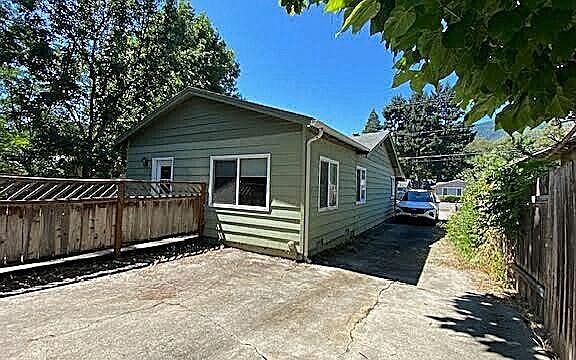 Charming home on spacious lot in the sweet city of Rogue River. Close to 1200 sq ft, this nicely updated home is clean as a pin and move-in ready with new flooring, double-pane vinyl windows and heat pump. Huge living room offers abundant natural light, while the large kitchen features granite counters, floor to ceiling pantry with custom pull-out drawers, and connects to a separate spacious dining room, perfect for holiday gatherings.