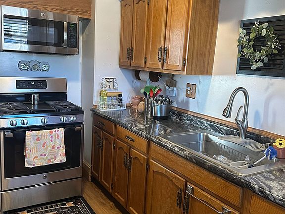 2 BEDROOM BUNGALOW THAT FEATURES LARGE LIVING AND DINING ROOM, NATURAL WOOD CABINETRY IN KITCHEN, NEWER COUNTERTOP AND STAINLESS STEEL APPLIANCES, LAUNDRY ROOM OFF OF KITCHEN W/ BARN DOOR, LAMINET THROUGH OUT LIVING AREAS, BOTH MAIN FLOOR BEDROOMS HAVE NEW CARPET, ALL WALLS HAVE BEEN DRYWALLED WITHIN 4 YEARS, BATHROOM COMPLETELY RENOVATED. NATURAL WOOD WORK THROUGH OUT HOME W/ SOLID WOOD DOORS. NEW ROOF ON GARAGE AND HOME WITHIN 3 YEARS. FRONT 4 SEASON PORCH GIVES EXTRA LIVING SPACE SCREENED IN PORCH OUT BACK FOR ADDITIONAL OUTDOOR LIVING SPACE, NICE CORNER LOT, GARDEN SHED, GARAGE OFFERS ONE STALL WITH SLIDEUP DOOR AND A SHOP ON OTHER SIDE THAT CAN BE CONVERTED WITH ANOTHER SLIDING DOOR, CAR PORT ON SIDE OF GARAGE, HOMEMADE EXTERIOR PIZZA/ BREAD OVEN WILL STAY, PLUMBED FOR BATHROOM IN THE BASEMENT.