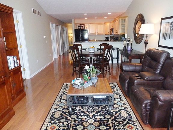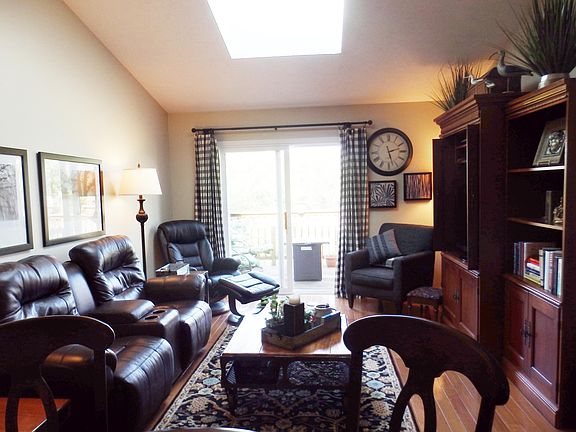 Beautifully maintained, like new 3 bedroom 3 bath condo in this Pine Ridge 38 acre development, overlooking the picturesque pond and woods with walking trails. Main floor features newer wood floors and carpet, master bedroom, master bath with porcelain tile, second bedroom, second bath, laundry, kitchen with maple cabinets, dining room and living room with sliders to spacious deck. Lower walk out level has 3rd bedroom, 3rd bath, and large family room with sliders to patio. Good sized storage area in basement with natural gas forced air furnace, A/C and newer water heater. Bedrooms feature walk in closets. Attached 2 car garage. Pet friendly development and you will love the peace and serenity of the area.
