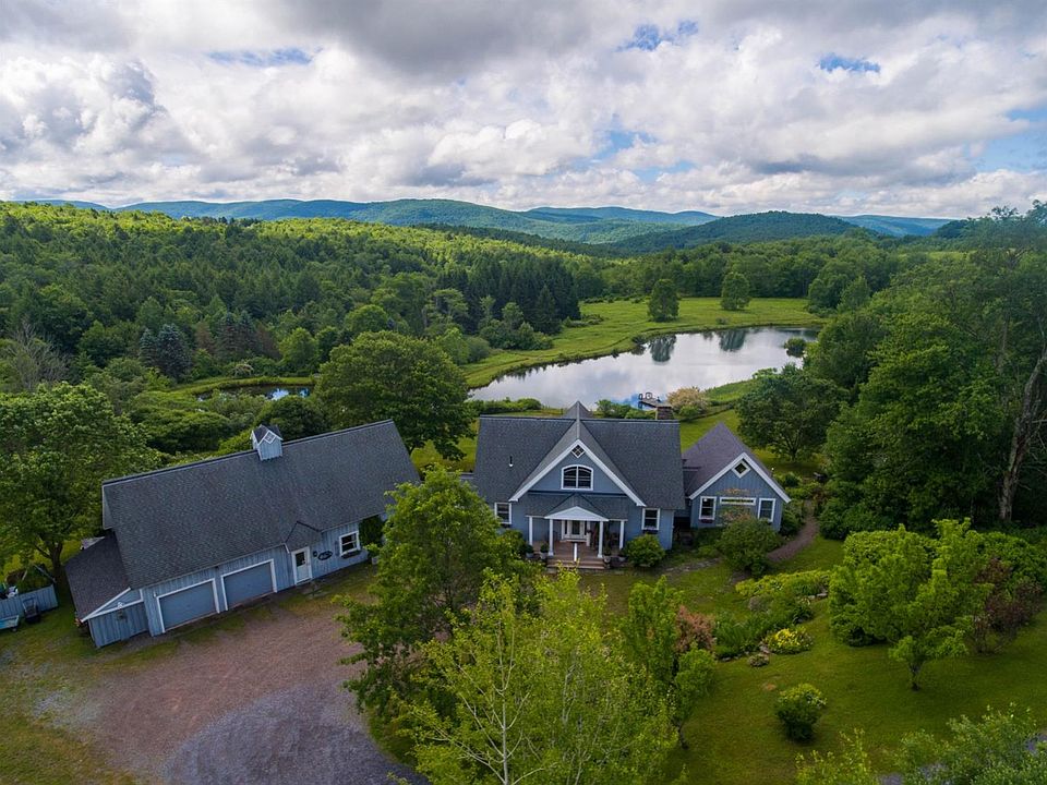 PRIVATE LAKESIDE LIVING. Yes... imagine your personal 3 ACRE SPRING-FED LAKE with MILES-LONG MOUNTAIN VIEWS, CASCADING WATERFALL and STREAM, HEMLOCK GROVE and ABSOLUTE PRIVACY on 48+ BUCOLIC ACRES with beautiful MATURE LANDSCAPING. This TURN-KEY CONTEMPORARY is the ULTIMATE RETREAT. Enjoy SUN-DRENCHED ROOMS with a OPEN-FLOOR PLAN, HUGE GOURMET KITCHEN with custom cabinets LARGE CENTRAL ISLAND and SERPENTINE COUNTERS, WOOD-BURNING FIREPLACE and plenty of room to relax. There is a spot for everyone with 6 bedrooms and 4.5 baths and is set up for privacy and comfort with a separate PRIVATE GUEST WING. Property features seamless INDOOR/OUTDOOR living with TWO SEPARATE LARGE DECK and PATIO areas to take in the views. Bring the whole family, hike, swim, kayak without leaving your own land! Close to all area attractions including local farm-markets, area restaurants and shopping, skiing, golf, and the villages of Andes and Delhi. Only 2.5 hours from the GWB