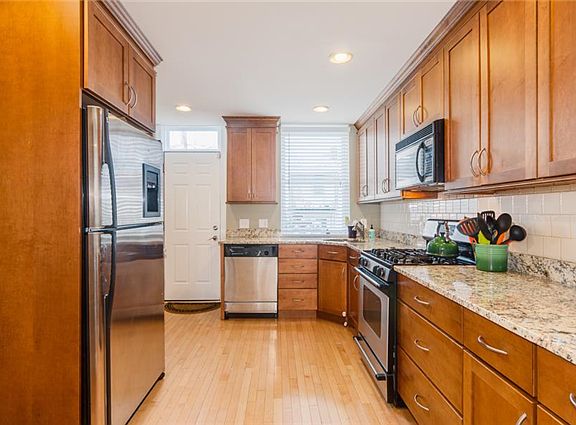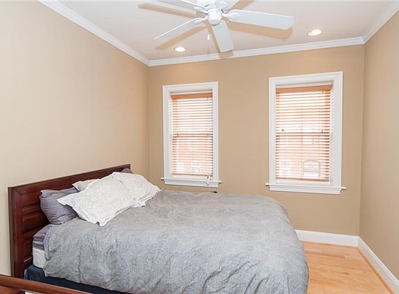 CHIC CANTON ROWHOME WITH 3 FINISHED LEVELS & PARKING! Hw floors & crown molding throughout upper levels, spacious living room w/ dining area, Chef's kitchen w/ granite counters, ss appliances, & tile backsplash, Master suite w/ full bath, 2nd bedroom w/ hall bath, finished basement w/ 3rd bedroom, full bath, laundry room, & parking pad. Great location - steps from Patterson Park & Canton Square!.