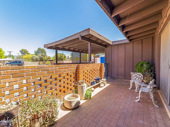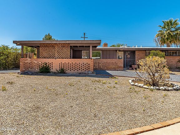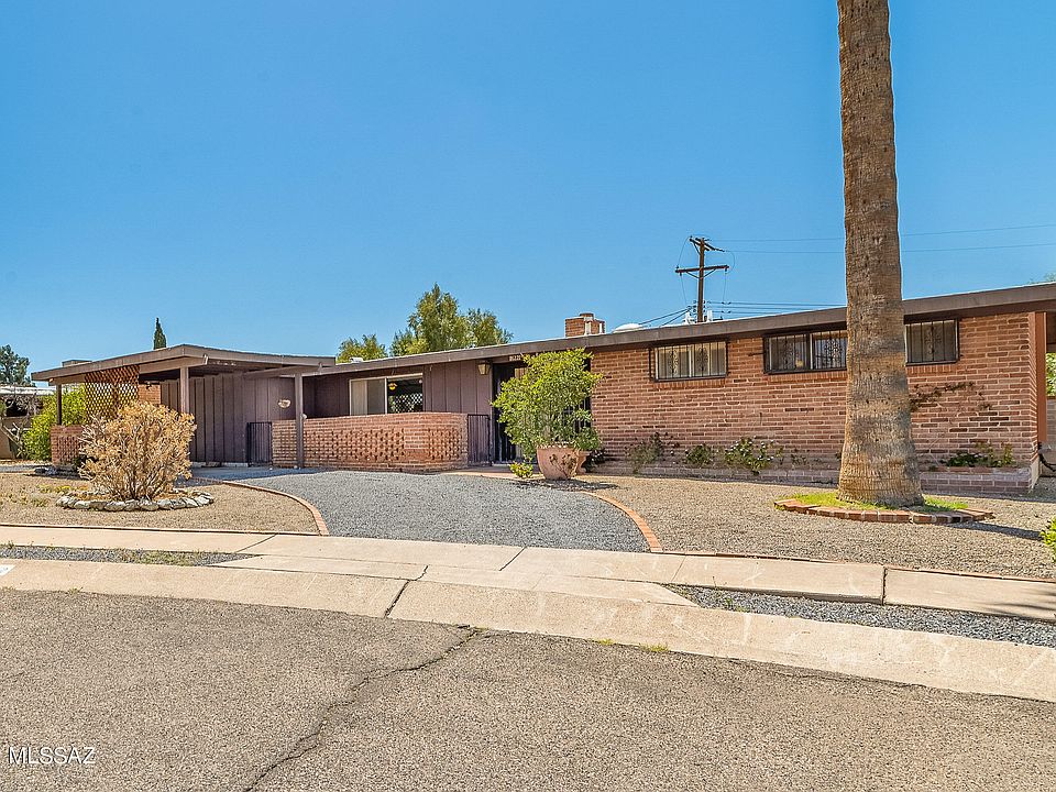Charming red brick home in desirable East Tucson community of Longview Estates. This 3 BD/2 BA/1,506 Sq.Ft home sits on a large .21 acre cul-de-sac lot. Inviting floorplan includes separate living area, family room w/brick fireplace, dining area & laundry room. Kitchen has plenty of cabinet & counter space, newer dishwasher, casual dining & breakfast bar. Backyard offers a large extended covered patio, sparkling pebble tec pool, lush landscaping & privacy. Don't miss out on this classic mid-century ranch style home.