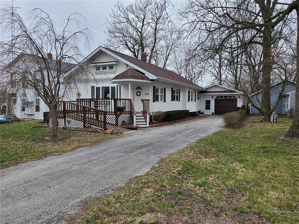Here is your move-in ready home that is warm and welcoming. The house is wheel chair accessible by means of the attractive front deck. As you enter in the front door from the deck you find a large sun room which has unlimited possibilities. The Kitchen has plenty of cabinets, counter space as well as an island and a formal dining room. The bedrooms have tons of closet and storage space. On the back there is a spacious screened-in patio attached to the house with entrances from the house, attached garage and fenced-in back yard with a floating deck. This property also features a heated spacious 19' x 35' one car garage and 12' x 18' shed in the back. The appliances that stay are the washer, dryer, dishwasher, range and refrigerator. The garage has new siding in 2022. The house has a new roof and guttering with gutter guards in 2023. The shed and patio had new metal roofs installed in 2021 and 2022.
