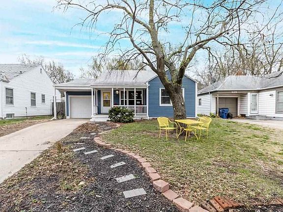 RUN - don't walk - to this charming ranch home in southeast Wichita! Contemporary updates pair with vintage charm for the perfect blend of newness and character. Pull through the quiet, tree-lined street and you'll feel right at home. Head up the front driveway and notice the home's excellent curb appeal, with mature landscaping and a cute covered front porch that has space for seating. Enter the home and you'll find a living room with big picture windows and hardwood floors. The fireplace makes a cozy spot to curl up near with a good book. The dining room is open to the living room and can accommodate any number of guests. Into the kitchen, you will love the beautiful updates! It features tile backsplash, two-toned cabinets, luxury vinyl flooring, and appliances that are included. This home has not one, but TWO main floor living rooms, giving you so much space to spread out! The second living room has unique features, including a wood burning stove under an eye-catching white paneled ceiling. There are two bedrooms on the main floor, along with a beautifully remodeled bathroom that has a tiled shower, matching black and white tiled flooring, and a new vanity. Head downstairs and imagine all the options that your basement offers! Just add your choice of flooring and this could be the perfect spot for an entertainment area or recreation room. Plus the basement already has a bathroom for your convenience. There's also tons of storage space, including built-in shelves and cabinets. This home really does have it all! Outside, the back yard is fully-fenced for your privacy. It's surrounded by mature trees and you'll have space for a firepit, garden, and whatever else you desire. This home is located just down the street from all of the wonderful amenities of College Hill, including unique eateries and tons of shopping, plus easy highway access and more. Schedule your private showing and come see it today before it's gone!