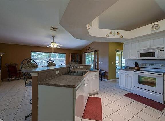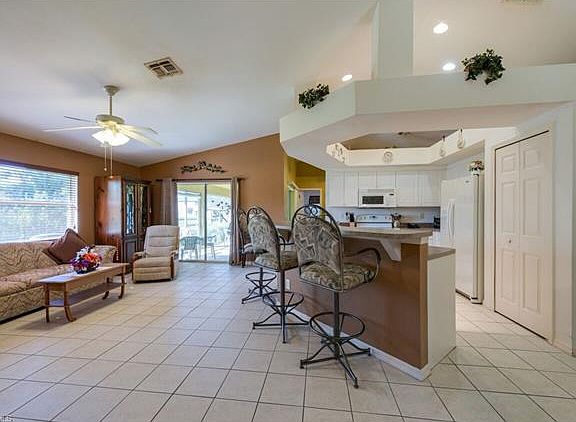 Fantastic, move in condition 3 bed 2 bath home located in SW Cape Coral. Nothing needs to be done except for you to move in. Over 1800 Sq Ft. Separate Living area and Great room, large open kitchen with Breakfast bar overlooking the great room. Tiled floors everywhere except bedroom, there is laminate in the bedrooms. Large Master suite with sliders out to the screened lanai. Fantastic Master bath with separate soaking tub and shower, dual sinks. Both guest bedrooms are large and in great condition. Huge screened lanai overlooks the well manicured back yard with patio / sitting area, fruit trees and nice landscaping. Gorgeous landscaping all around the entire home. Get this while you can, its priced to sell. Make your exclusive showing appointment today before its too late.