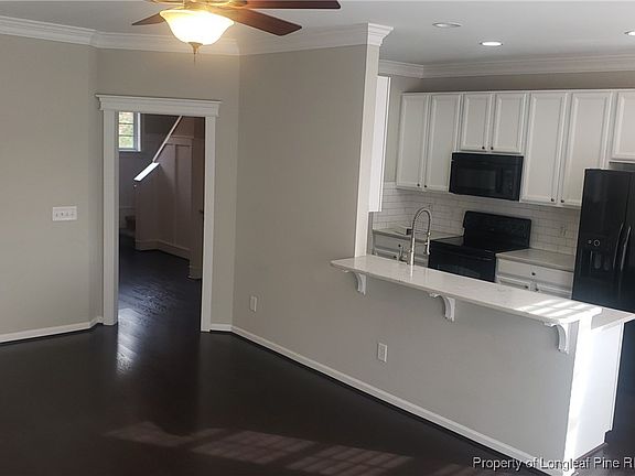 AVAILABLE NOW! Beautiful end unit townhome featuring a main level bdrm/den/office with full bath! Second floor with hardwood floors, quart countertops in the kitchen, 3 bdrms 2 bath on top level! Two car garage in pool comunity! Convenient to charming downtown Apex!