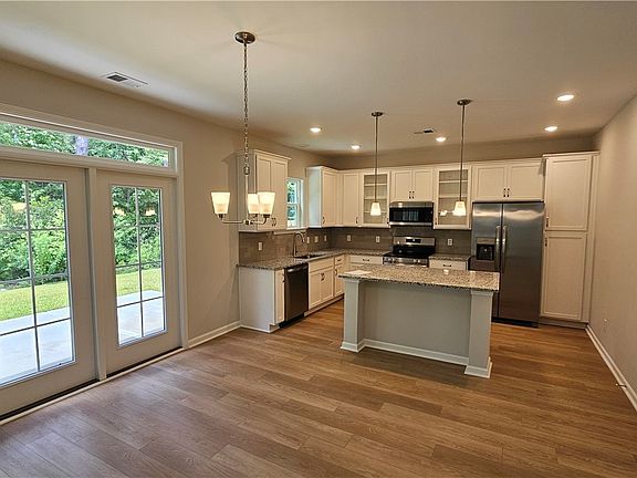 Savannah's most trusted local builder is proud to offer our Dayton plan. This 5 BR/3 BA home is open with tons of natural light and gorgeous upgrades! On the main floor living spaces and in laundry room and bathrooms you'll find wood-look vinyl flooring, while the kitchen boasts 42" tall cabs with plenty of storage space and an amazing pantry and center kitchen island. All kitchen appliances are included in stainless steel - even the fridge! A guest bedroom next to a full bathroom is on the first floor, as well as a study/office with French Doors. Upstairs you'll find four bedrooms Including the Primary and two full bathrooms, a loft, and plenty of storage/closet space. Primary bathroom Fearures a Tiled Garden tub and Separate Shower as well as two sinks in a quartz top vanity. Full sod & sprinkler in yard. Home is complete. All builder incentives applied.