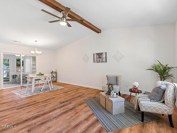 Welcome to this charming single-story home located in the desirable Brynn Marr neighborhood! This delightful four-bedroom, two-bathroom residence offers an ideal blend of comfort and convenience. Step into a spacious living room that invites relaxation and gatherings. The well-appointed kitchen boasts updated applainces with ample cabinets and counter space, perfect for culinary adventures. Enjoy meals in the adjacent dining area, which features a sliding glass door that opens to a sunroom and fenced-in backyard - ideal for outdoor entertaining and pets. Situated just minutes from military bases, shopping centers, schools, and parks, this home provides an exceptional living experience. New roof and HVAC 2024! Don't miss the opportunity to make this wonderful property your own! Property is owned by a NC Real Estate agent.