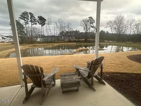 Welcome home to this stunning end-unit townhome, completed in late 2022 and occupied only since March 2023! Featuring a rare four-bedroom layout, this home offers an exceptional blend of modern style and functional design. The spacious two-car garage and versatile bonus/flex room provide ample storage and creative opportunities for your lifestyle needs. There is also a large unfinished walk out attic that could easily be converted to additional living space. The open-concept main floor boasts a chef's kitchen with premium finishes, perfect for entertaining, and a light-filled living space that seamlessly flows to the back patio. Enjoy tranquil views of the beautiful pond, home to turtles, herons, and even the occasional deer, creating a serene natural backdrop right in your backyard. This thoughtfully designed home includes a first-floor primary suite for ultimate convenience and a first-floor guest bedroom adjacent to full bathroom, offering privacy and comfort for visitors. Located just minutes from Highway 264, this home also provides quick and easy access to all that the Triangle area has to offer. Whether you're commuting, shopping, or exploring local attractions, this prime location keeps you close to it all. Don't miss this rare opportunity to own a like-new townhome with unbeatable features and an idyllic setting. Schedule your showing today! Refrigerator in kitchen, TV above fireplace in living room, and tv in upstairs bedroom(on wall) convey. Washer/Dryer negotiable with good offer. Rowing machine, peloton, and outdoor rocking chairs are for sale separately from home sale if interested.