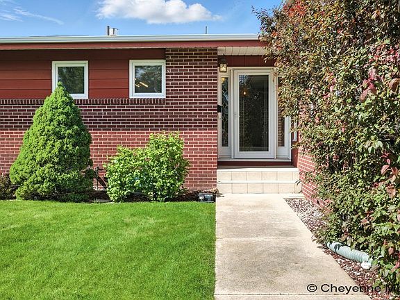 Welcome to this stunning brick ranch home featuring 5 spacious bedrooms and 4 baths, perfect for comfortable family living. Enjoy the convenience of a large laundry area and abundant storage throughout. With two ensuites and a walkout basement, this home offers flexibility and privacy. Entertain guests in style with a large custom wet bar and cozy up by one of the two fireplaces (wood and gas). The park-like yard is adorned with mature trees and vibrant perennials, complemented by a covered patio ideal for outdoor gatherings. Additional highlights include a sprinkler system, gas barbeque hook-up, two storage sheds, and alley access. Stay comfortable year-round with dual furnaces and A/C. Located in an excellent north location with easy access to I-25, Central High School Triad, FE Warren AFB, WY National Guard Headquarters, and shopping options nearby - this move-in ready gem has been professionally cleaned for your convenience. Don't miss out on this incredible opportunity!