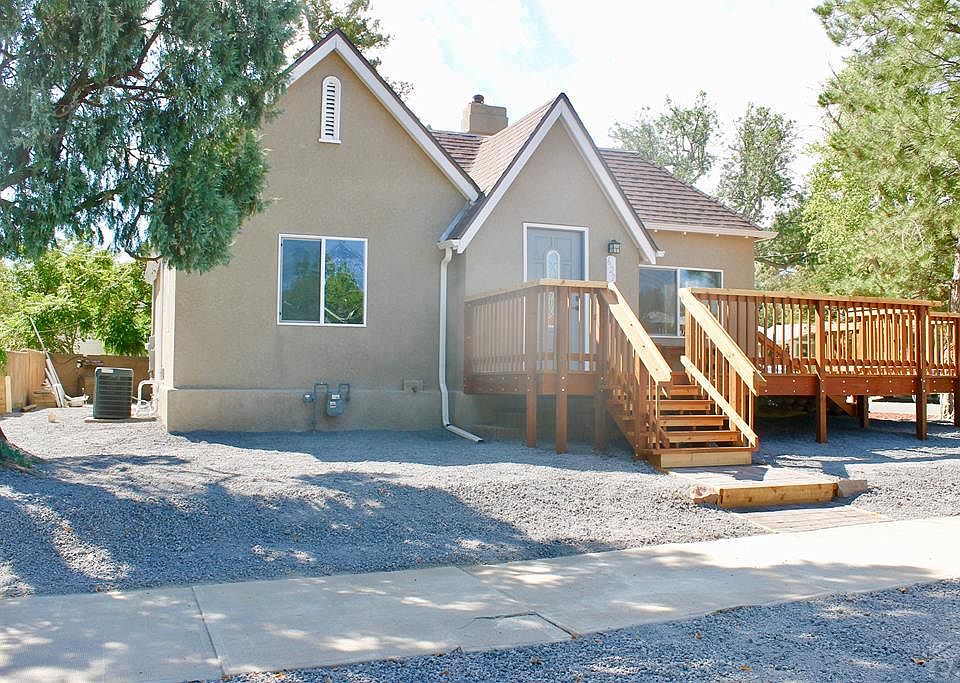 Almost everything is new in this charming home built in the 20's. Sitting on a corner lot, the large wrap around deck welcomes up to your new home. Step inside to beautiful refinished hardwood floors in you main living room. With 3 bedrooms on the main level and 1 bedroom in the basement. Make sure you notice all the detail and work that was put into this home. Old Charm with new feeling. All the following are new in this home; stucco, deck, gutters, electrical (inside and out), plumbing, carpet, tile, soft close cabinets, granite counters, central a/c, furnace, hot water heater, windows, all appliances including washer/dryer, doors, paint, just to name a few. You will love the large kitchen that has a large pantry, new cabinets, granite, stainless steel appliances and make sure to test out all the sink faucet does. Both bathrooms have been completely remodeling. Make sure to check out the gorgeous master bath that includes double sinks, brand new washer/dryer, large glass door with dual shower heads and dual hand wands as well as glass shelves in the shower. All LED lighting inside with main rooms having dimmers. Out back is a large shed for plenty of storage and new sod. Schedule your showing today before this home is gone. Make sure to check out the 3D video of this property.