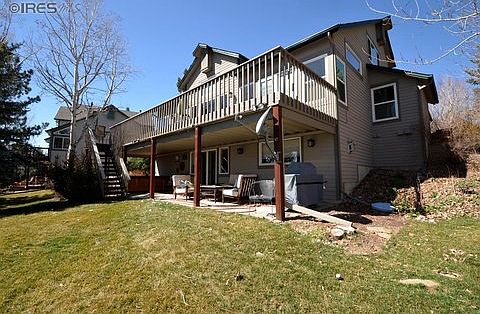 Great home for entertaining your next party, both inside and out!! Bright and sunny 4 bdrm, 4 bath home, 1/3 acre yard, mature trees and plains views. Main floor vaulted ceilings w/ updated kitchen. Dining & master bdrm flow onto elevated deck w/ SE views (AM Sun PM Shade). Two large bedrooms and bath upstairs. Walkout finished basement connects to back patio protected from the rain over looking well-designed back yard. Generous basement rec room, 3/4 bath bedroom. Extensive storage throughout. Wireless NEST thermostat, garage door and sprinkler/drip irrigation system. Walk to the Rec Center, skate park, tennis courts, arboretum, Coal Creek Elementary Harper Lake and dog park. Fruit producing, apple & peach trees, raspberry bushes. New roof, exterior & interior paint. Water heater installed in 2018. Newly refinished hardwood on main floor. Patio is wired for a hot tub.