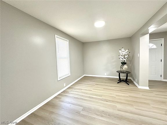 covered with New Luxury Vinyl Planks, all vinyl windows and new LED lights to help you save on the electric bill. After taking just a few steps in, the cozy living room greets you with a relaxing view by the window. To the right of the living room you'll find the designated dining area, where you can enjoy delicious meals and create unique memories. To the left of the living room, you'll find a decent size updated bathroom with a new vanity, new toilet and several shelves for storage. Also, to the left of the living room is the kitchen with a decent amount of updated kitchen cabinets, a new laminate countertop and a new tile backsplash. From the kitchen you can go down to the full refreshed basement where the hook-ups for washer and dryer are OR you can exit to the concrete parking area, where you can easily park three cars. To the right of the parking area you will find the concrete patio area waiting for you to bring your outside furniture and enjoy some grilling.