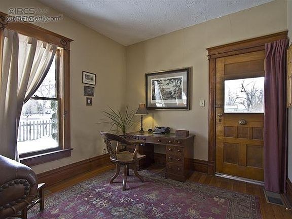 Super cute, surprisingly roomy bungalow in the heart of downtown Berthoud! Original wood floors. This 2 bedroom 1 bath, 1185 sqft home has a parlor & sun room. Relax on the picture perfect front porch swing while sipping tea and watching passers by. Fresh exterior paint, roof inspected and was replaced as needed. Huge trees, fully fenced, private back yard, oodles of blooming flowers all summer long. Single car detached garage. Located within walking distance to all downtown amenities and parks.