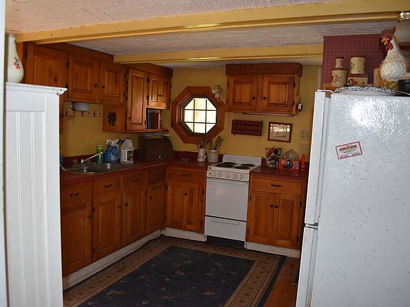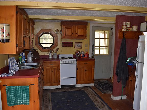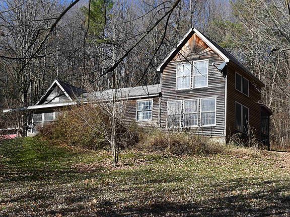 Superbly located with pleasing Green Mountain panorama and pleasant country setting. Rooms are comfortable and attractive with plenty of morning sun. The flooring is hardwood and softwood. There is a wood stove on brick hearth in the living room. Electric is back-up heating. About 2.3 acres of open and wooded land. A small barn is located near the house. This property is being sold 'as is' and not a likely candidate for normal residential financing due to condition. A beautiful opportunity to fix up for owners use or re-sale. Contents are included.