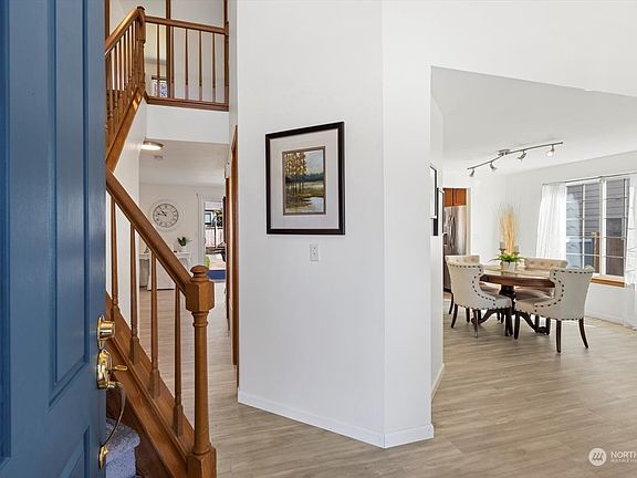 Ideally situated on a quiet cul-de-sac, this 2-Story home in Silver Firs can be your happy place! Enter the front door to vaulted ceilings and new LVP flooring on main level. Enjoy relaxing in the open concept living space where living room with fireplace meet eating area and kitchen. Upstairs find 4 bedrooms, new carpet and easy access to 224 sq ft of attic storage via pull down ladder above primary closet! Freshly painted interior, triple pane windows and hot water on demand. Relax or entertain on your Trex deck overlooking spacious yard with sprinkler system. Outbuilding with power can be used as an office. Close by Willis Tucker Park. Everett Schools.