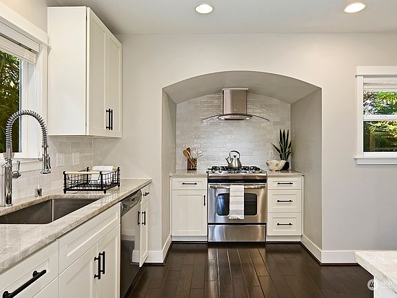 Classic Ravenna Craftsman home perched above the street with a fantastic entertainer's dream of a private back yard! Don't miss your opportunity to own this 1920's, 4 bedroom & 3 bathroom CHARMER with vintage arched doorways & craftsman style doors. Chef's kitchen was recently remodeled with quartzite countertops, stainless steel appliances, and refreshed cabinetry. Primary Suite is located on the upper flr - private, spacious, & a retreat with a 5 piece bthrm, walk-in closet, additional storage, and private office nook. Basement bodes an additional bedroom, bathroom, laundry space, and large flex room. Access to the garage via the basement with tons of storage and single car parking spot. Centrally located - this home is a must see!
