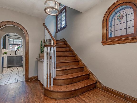 Storybook charm and modern amenities welcome you to this impeccable home in the sought after neighborhood of HiPointe-Demun. The kitchen underwent an extensive remodel in 2019. It boasts stainless steel appliances, loads of cabinet storage, beautiful natural stone Quartzite counters and a walk in pantry. The large living room with gas fireplace opens into light filled dining room. Gorgeous leaded/stained glass windows throughout the home will delight along with other original built ins and architectural details. Completing the first floor is a half bath with another curved original window. Primary bedroom has custom closet shelving, 2 additional bedrooms and updated full bath with heated floor and even more storage in landing complete 2nd floor. Relax on the back deck for expanded living space and summer entertaining. The Restaurants/shops of DeMun, Forest Park and Washington University are all just a short walk away.