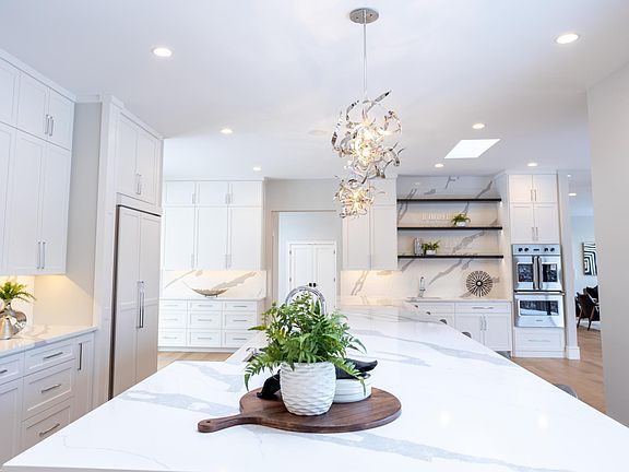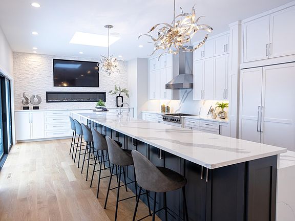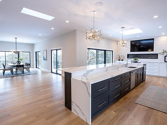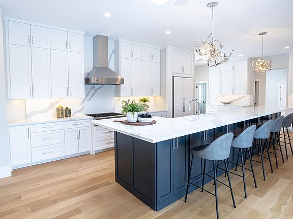 gigantic island, stunning fixtures, a pantry and a sitting area. It has main-level and lower-level