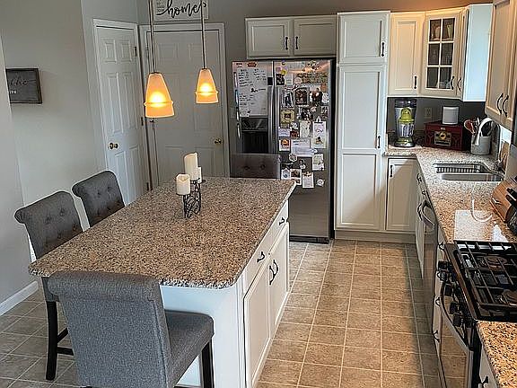 VERY CUTE 3 BR, 2.5 BATH 2story home in desirable Hampden Court! FINISHED basement family room for entertaining. Newly renovated kitchen with stainless steel appliances and white cabinets. 1st floor features 2-story foyer, living room, dining room, and large eat-in kitchen with large sized granite island & gas cooking! Master suite is BIG! 24x20 Master bedroom! Plenty of room for a king bed and furniture for sitting/TV area. All bedrooms are nice sized and all include ceiling fans. 2nd floor also features loft area. Yard is fenced with deck. This home is a must see!