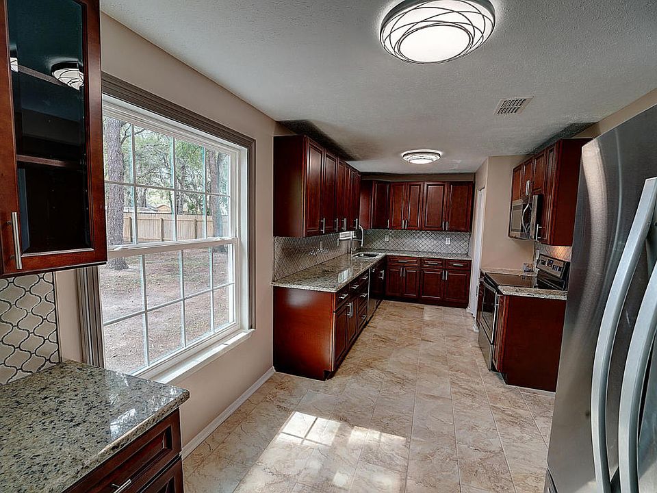 Like NEW, NEW, NEW!!! Beautiful, fully remodeled home in great neighborhood. New roof, new HVAC, new kitchen cabinets, new granite counter tops, new stainless appliances, new tile, new carpet, new vanities, new fixtures, new garage door & opener. Home features HUGE living area, 3 bedrooms, 2 baths, 2 car garage, huge privacy fenced back yard, and much more. Convenient to schools, shopping, and Tyndall AFB.
