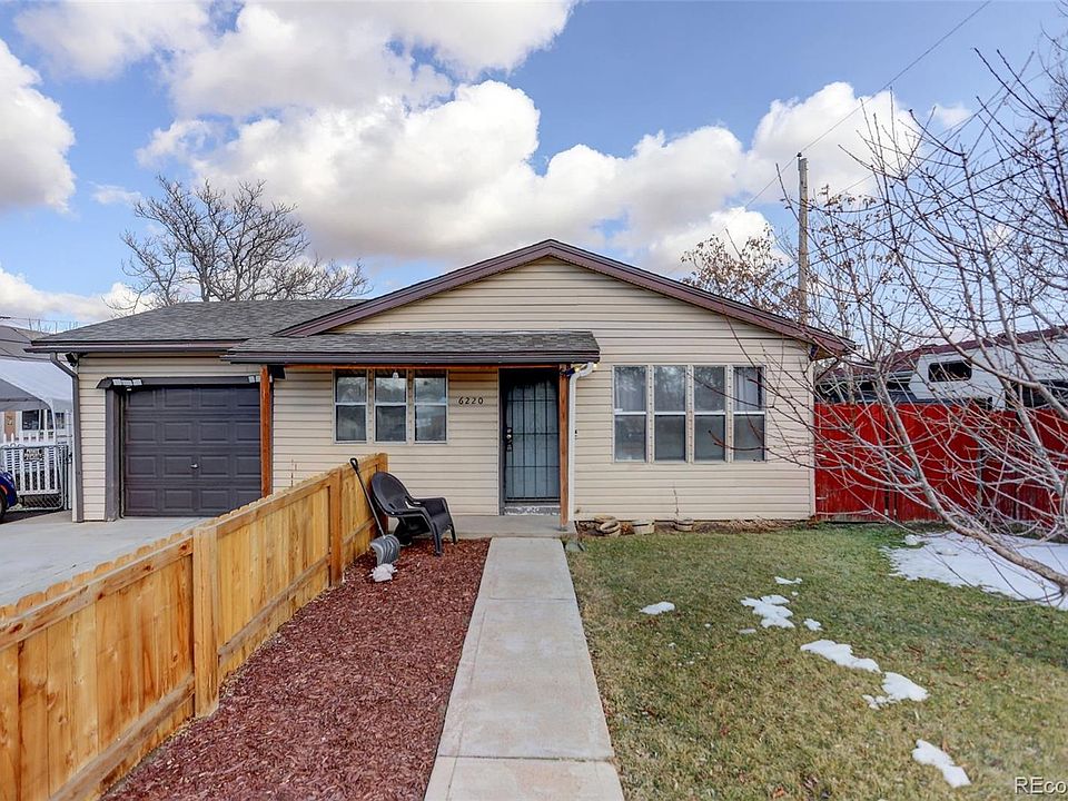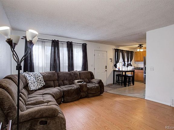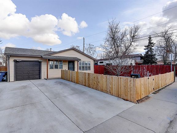 Updated ranch home featuring 3 bedrooms, 2 baths. Open floor concept from the living room to the kitchen and dining area, Granite countertops, tile floor, stainless steel appliances in kitchen. Laminate hardwood floors that lead to 3 large bedrooms and a bonus back room being used as a 4th bedroom, could be an office or family room. This home offers a practical layout, has a newer swamp cooler purchased last year, will be installed by close. Fenced front yard, plenty of parking with a 1 car garage and a large paved driveway. Large covered patio with a fully fenced backyard with 2 storage sheds. Great location in Commerce City. This home has solar and will be paid off at close.