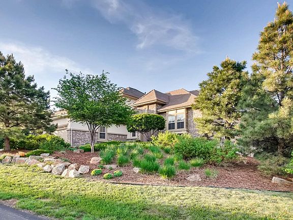 No HOA dues for 2 years in Castle Pines? That's right, 2 years of HOA dues paid by the seller as their gift to the buyer! Spacious main floor master layout with 5 bed/6 bath, sun-facing driveway, 3-car garage in gated Castle Pines Village minutes to American Academy. Walk-out basement with large gaming area, theatre, bar, exercise room, guest room with attached bath. Kitchen has granite counters, lots of storage and SS GE Monogram appliances. Study, formal living/dining rooms. Flat, usable yard with decks, patios. Close to freeways, schools, amenities.