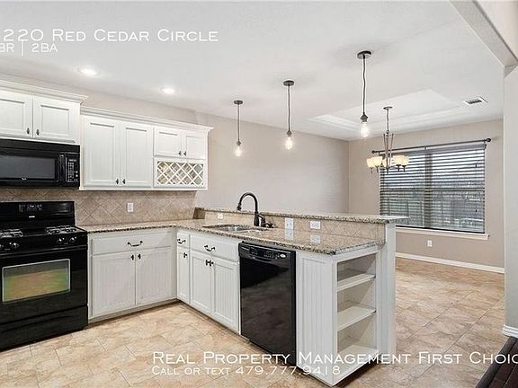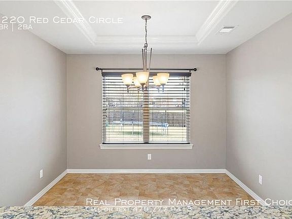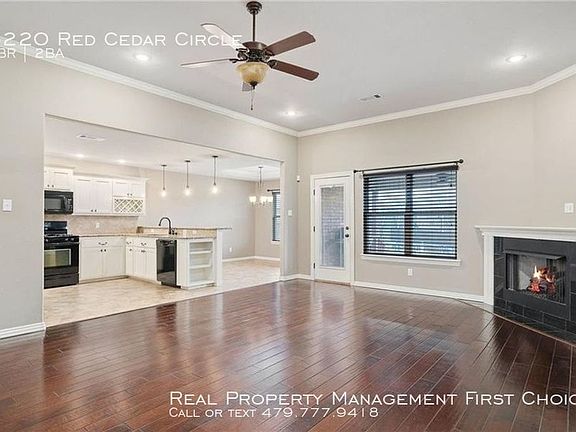 6220 Red Cedar Circle in Fort Smith is offered for rent by Real Property Management. Inside this gorgeous custom built home, you'll find soaring ceilings, four spacious bedrooms, two bathrooms, primary bedroom includes a HUGE walk-in closet and bathroom with double vanity, walk in shower, and whirlpool tub. Granite and hardwood floors throughout. Custom crown molding and bull-nose corners. The open concept kitchen with breakfast bar is the perfect place for gathering! Enjoy your morning coffee by the gas burning fireplace, or in the sprawling, private back yard. This home has it ALL!. All Kitchen Appliances. Blinds. Crown Molding. Custom Cabinets. Fenced Back Yard. Jacuzzi Tub. Real Hardwood. Walk In Closets. Washer/Dryer Hook Up