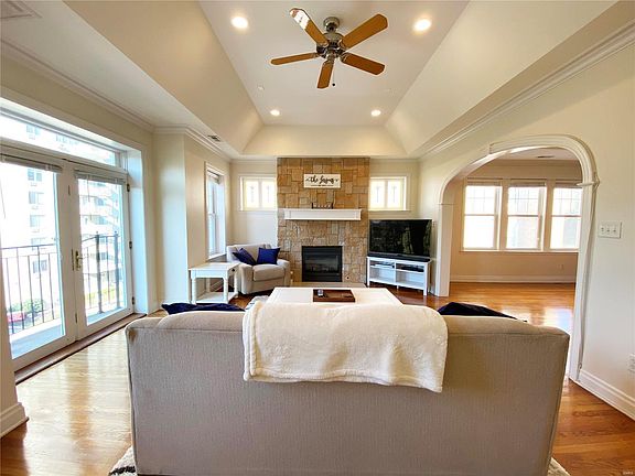 Take in the sights of vintage St Louis from your front juliet balcony and enjoy Forest Park...just one door to the east! Welcome home to the incomparable DeMun Neighborhood. This third floor condominium offers generous entry foyer, dramatic stone fireplace, beautiful archways and architectural details, stained glass, 2 balconies, hardwood floors and a fresh open floor plan. 3 bedrooms (one adjacent to kitchen used as office or tv room), 2 full baths, in-unit laundry room and off street parking for 2 cars. (One garage and one surface spot in rear of building.) The entire building was gut rehabbed by a talented developer and includes a luxurious master bedroom suite with large walk in closet, and bath that includes separate shower and bathtub...the condo has remarkable finishes, including granite, stainless and good quality windows. Enjoy all that Forest Park and the DeMun Neighborhood has to offer. Neighborhood cinemas, coffee house, outdoor cafes all walkable from 6220 Rosebury Ave!