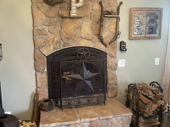 Storm shelterWalk-in closetWalk-in showerStand-up showerWood-burning fireplaceLarge master suitePrivate water closet