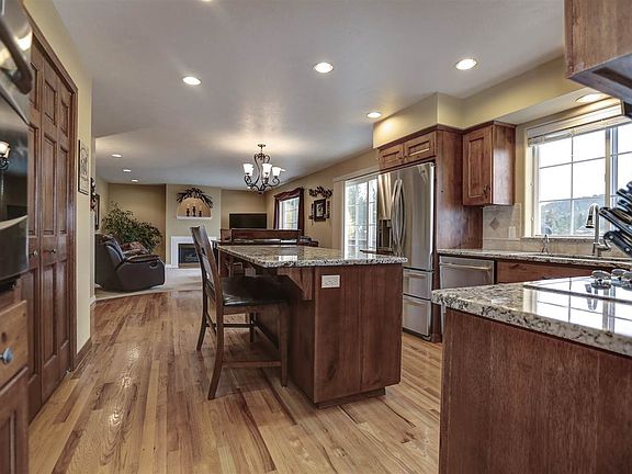 Expansive 5.49 Acre only mins to services, this beautiful home has it all! Stunning features such as grand entry, hardwood floors & designer touches throughout. Complete updated kitchen w/hickory cabinet's w/pull-outs, stainless appliances & eating bar. Spacious Master Suite is true retreat w/amazing views, & lower level is finished w/gym, game & family room. Step out to fabulous 40x20 in ground pool w/hot tub & view! Property has room to grow w/unlimited possibilities, perfect for horses/shop. A must see!