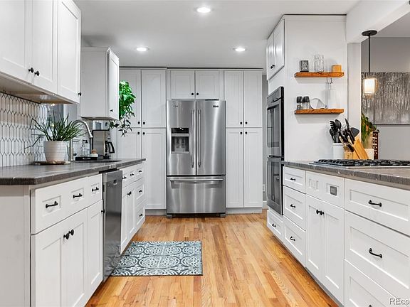 Don't miss your chance to own a one-of-a-kind property in Centennial, with an unbeatable location. This lovely, updated ranch even has a permitted ADU! Step through the front doors and you're greeted by an open concept floor plan flooded with natural light & beautiful hardwood floors. The kitchen has been tastefully remodeled with an expansive "island" with bar top seating, a gas range with hidden downdraft, double ovens, concealed microwave, & stainless refrigerator. The doors and drawers are soft close with pull out drawers for fantastic storage. The dining area is considerable & right off the kitchen, with double french doors to your covered back patio, perfect for entertaining. The generous backyard is fully fenced, with a built-in gas line connection for an outdoor fire pit or grill, and spacious patio is covered with lights and fans so you can enjoy the great outdoors on the hottest days. The hot tub and 2 storage sheds are included! The main level boasts 4 bedrooms and 4 bathrooms, with high ceilings, neutral paint, and updated fixtures. The owner suite has plentiful windows, all on remote control, a grand closet and attached, modern bathroom. Step down to the basement to find another owner suite with a conforming bedroom and full bathroom. The rec room is great for playing and the non-conforming bedroom would make a great office or workout room. There is an unfinished storage room as well as an outfitters room. The solar panels are owned and sellers report an almost net zero electric bill. The permitted apartment has its own private entrance from the exterior as well as a dividing door to the main living area which provides flexibility for a live in guest, multigenerational living or rental. It is fully self-contained with an updated full kitchen, living room, conforming bedroom, and updated bathroom. Across the street from the highline canal & walking distance to multiple parks, the pool, 2 elementary schools, and a short drive to the Streets of Southglenn!
