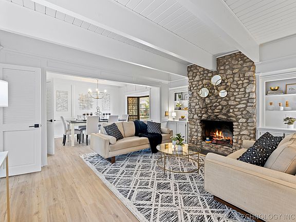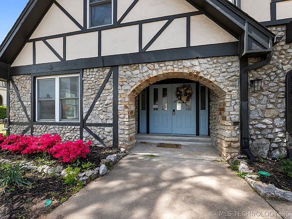 This English Tudor Country Home has been totally renovated including new kitchen, bathrooms, flooring, fixtures, and paint. All that is needed is to plant the English Lavender! With six bedrooms and three living areas, the options are endless! There are two bedrooms downstairs including the en-suite. The other is perfect for a nursery or study. The upstairs "rumpus room" is centered by four bedrooms, one of which is large enough to use as a theatre or game room. The home was custom-built for the same family that has owned it for 45 years. The vibe is great for the next family. Located in Livingston Park (adjacent to Braeswood), the location is central to all good things Tulsa!