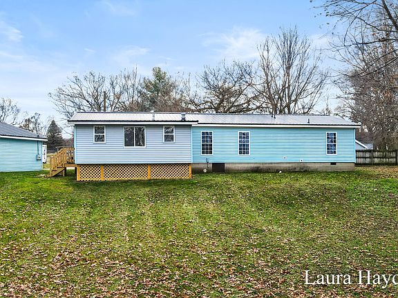 Completely remodeled double wide nestled off the road on 1.36 acres. This gorgeous lot backs up to the Fred Meijer walking trail that goes for miles. This home has new metal roofs on both the house and garage. Three bedrooms with 2 full baths. Master Suite. New kitchen with soft closer doors/drawers. New Stainless steel appliances included. Don't wait. You could be in before Christmas.