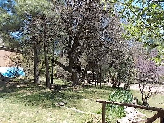 Double-wide 1982 Champion manufactured home nestled among pine and juniper trees with a couple apple trees. Mud room and a detached shed, large driveway to accomodate up to 5 vehicles. Three bedrooms, two bath, fireplace, open family room, large deck with beautiful views. Home is selling as-is.