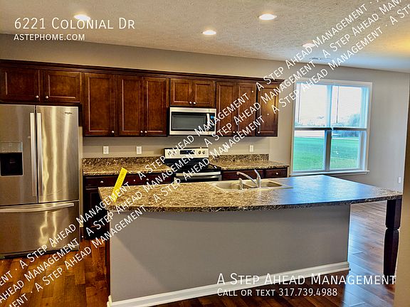 This 2140 square foot apartment home has 3 bedrooms and 2.5 bathrooms. This home is located at 6221 Colonial Dr, Whitestown, IN 46075.