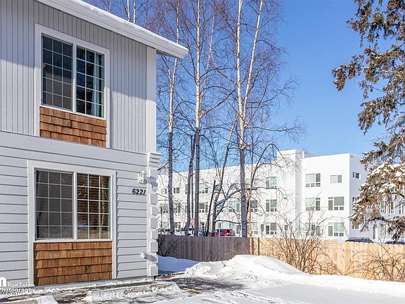 Gorgeous end unit townhome with open-concept kitchen/living/dining & large bedrooms, with upstairs laundry! Move-in ready home, with fresh paint, durable waterproof luxury vinyl plank flooring, new carpet, and stunningly updated bathrooms. Wake up to mountain views and let your four-legged friends explore the backyard. This home allows for a quick commute to both the U-Med District and JBER.