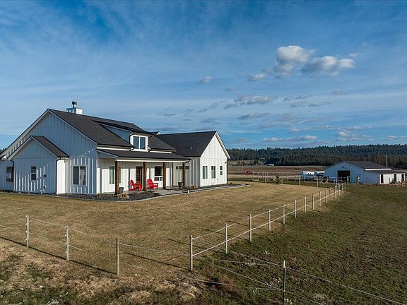 Whitworth Wtr! It’s doesn’t get much dreamier than this recently built Colbert farmhouse on a 10 acre horse property w/ stunning views of Mt. Spokane. All the details - gorgeous modern farmhouse exterior w/ wrapped pillar entry. Desired modern layout upon entry. Vaulted living room w/ wood burning fireplace, dining room. Kitchen w/ island, granite countertops, gas stove and pantry. 3 main level bedrooms including primary w/ dreamy ensuite w/ soaking tub, walk in tiled shower and double sinks and oversized walk in closet. 2 bedrooms with shared bathroom on opposite side of home. Mudroom, Laundry Room. Loft bonus room w/ full bathroom. Easily convert to 4th bedroom or continue utilizing as spacious secondary living. 2 car garage. Barn that can be finished and closed in to create shop. Horse stable w/ 3 stalls + fenced front pastures. Chicken coop w/ run, pig stalls, playground. Minutes from North Spokane, Mead Schools, Northwest Christian Schools and Mt. Spokane Ski Park. Virtual tour available upon request.