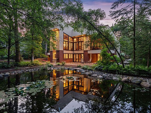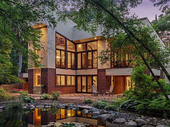 Welcome to this incredible architecturally designed walk-out contemporary home, nestled on a beautifully manicured, private 0.5+ acre lot in Parkwood Knolls. This stunning residence feels like a living piece of art, boasting vaulted ceilings, spacious and open rooms, and floor-to-ceiling windows that frame breathtaking views of the serene backyard and pond. The main floor is thoughtfully designed for luxurious living and convenience, featuring two distinct living spaces, a gourmet kitchen, a formal dining room, two bathrooms, a primary suite, and a laundry room. Enjoy the outdoors in comfort with a charming screen porch and deck. Adding to the allure, the second level includes a versatile loft space, perfect for a home office or creative studio. The lower level is an entertainer's dream, offering an expansive amusement room, a stylish bar area, and two additional bedrooms, and two bathrooms. This home combines modern elegance with functional living spaces. Every detail has been considered to provide an unparalleled living experience. Per Edina School Administrator, Edina residents receive preferential treatment if open enrolling into #273 schools. Check for availability.