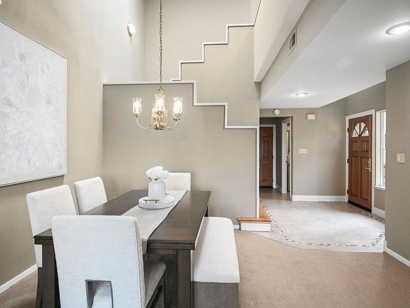 Spacious Townhouse-Style Condo Nestled in the Desirable Gated Community of Canyon Lakes. Perfect blend of comfort and style with soaring ceilings and large windows for natural light. The updated kitchen includes a convenient breakfast bar and cozy breakfast nook overlooking the back patio with its mature trees and foliage. The street-level living areas include flex-space for dining, entertaining or relaxing along with a half bath and laundry room. The attached two-car garage has direct access to the home, a two-car private driveway, near plenty of guest parking, and includes built-in storage cabinets. Upstairs, the spacious primary suite features vaulted ceilings, a walk-in closet, and an en-suite bathroom with jetted tub, separate shower, and double sinks. Enjoy leisure-living amenities of 4 pools, and just steps to the Sunrise Cove Pool & Spa. Lighted tennis & pickleball courts. Walking trails that include picturesque lake views, picnic areas & BBQ’s. Top rated San Ramon Valley Schools, just minutes to Blackhawk Plaza, the City Center at Bishop Ranch, San Ramon Community Park, The LOT & easy access to the 680 freeway.