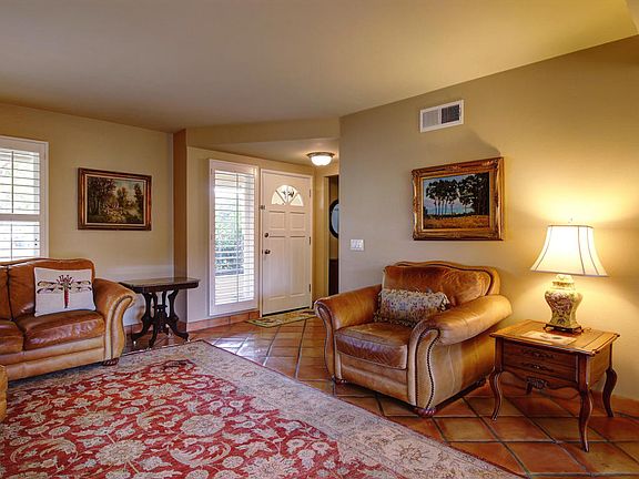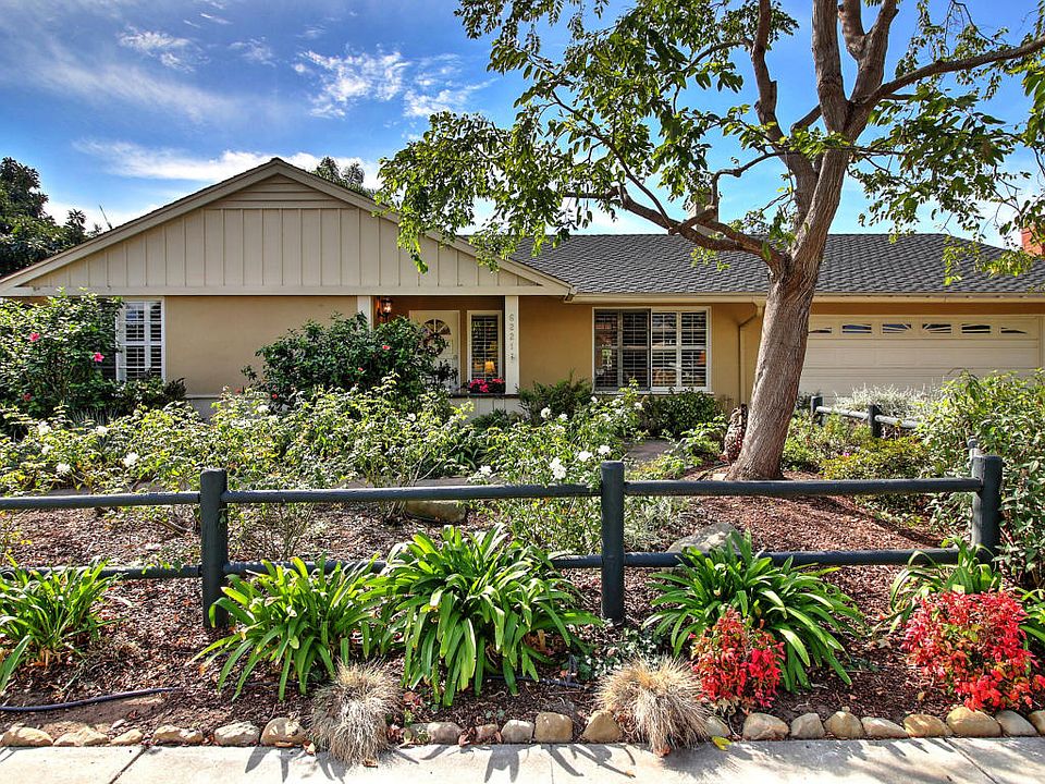 Montecito style remodel with breathtaking gardens with specimen planting and lush lawn.Move in ready this home offers a open floorplan, gourmet kitchen with stainless steel appliances and granite counters, ultra deluxe custom baths. Plantation shutters.Flat screen TVs in LR & Master bdrm are incl.Saltillo floors thru-out . Office off of kitchen. A few doors from the Stow Canyon open space.