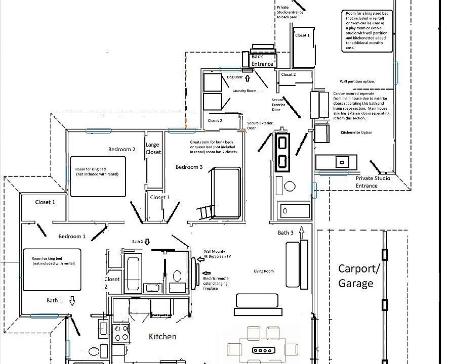 For rent, coming late April. North west near Fruitvale Norris Park. 4 Bed 3 Bath Olive drive area. Address and pictures to be provided once construction is completed early April. BRAND NEW EVERYTHING. $2250.00/Mo. Nearly 1500 SF smart home. Dogs welcome with additional deposit and fees and insurance requirements. Torn down to the studs and completely rebuilt in 2023. New exterior stucco and siding. New interior drywall, paint, luxury blue/gray flooring throughout entire house. New doors, windows, insulation, plumbing, electrical. 3 new bathrooms and 1 new kitchen. New stainless steel smart wifi refrigerator and stove, extra quite stainless steel dishwasher and microwave. APPLIANCES WILL BE DELIVERED ON MOVE IN DAY. New wifi smart washer and dryer will be included. New high efficiency central HVAC system with ALL new ducting and smart wifi touch thermostat. ELECTRIC CAR CHARGER CIRCUIT. Save money with the new efficient HVAC and insulation throughout. New smart 4k big screen with surround sound and remote color changing fireplace. New carport/garage. New smart home alarm system included (monitoring requires subscription ~ $28.00/mo) Ceiling fans in every bedroom and living room with remote and some with wifi connectivity to the fans. 9 foot ceilings throughout most of house. Two of the bedrooms have ensuite baths. Two driveways, one with 10 foot wide gate to backyard to store large RV or toys. Nearly 1/4 acre lot. So many new custom features you must see it to believe it. Did we say dog friendly, with dog door and designed to allow pets into temperature controlled laundry room while keeping the main house secured with exterior doors. Setup can be 4/3 or 3/3 with large game room or even with additional costs to adjust layout, possible separated 3/2 and 1/1 for extended family (entire house is not be rented to more than one family). Again, you must see it to appreciate it. To qualify, you must make 2.5 x monthly rent and have good credit. Do not bother resident living on premises during construction. 1 Year Lease. Must have provable income 2.5 x rent amount and everyone over the age 18 must fill out an application for credit screening. Screenings are $45.00 per person 18 and up. We only run screenings one group at a time so you won't be charge unless you are in next in line to be screened. No evictions or bad credit. Only one family unit can occupy the property and no subletting. No smoking of anything on the premises anywhere. Renters insurance required. Limit to 2 dogs and dogs must be listed on an insurance policy which is provided to management company. Additional deposit for pets. No storing of items on the property other than ones belonging to the tenant.