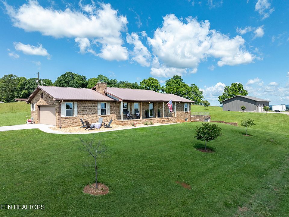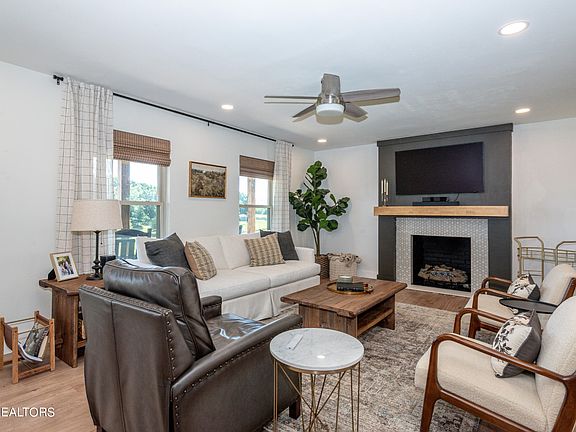 Welcome to this newly updated all brick rancher on over 2 acres with exquisite panoramic mountain views! The main level features an open living room, dining room, and kitchen area tastefully renovated with new cabinets, flooring, countertops, appliances, light and plumbing fixtures, paint and trim. A butler's pantry provides extra storage and powder room and mudroom are easily accessible from the pool. There are 3 bedrooms on the main level and a fully renovated bathroom with large tiled shower, and plenty of vanity space. Downstairs there is a large den area, additional bedroom or workout room, full bathroom, oversized media room with plenty of space for stadium seating and lots of additional storage. With downstairs entrance, this could be turned into an additional living area, Outside is a wonderful entertainment area with inground pool and plenty of deck and porch space to enjoy the mountain view. A main level 2 car garage and additional basement level garage provide extra parking space or storage for mower. The oversized detached garage has enough space for additional cars or boat or can be used as a workshop area with electricity and water. Live out your East Tennessee dreams with room to spread out in this exquisitely remodeled home on a private 2 acres with pretty views from all around!