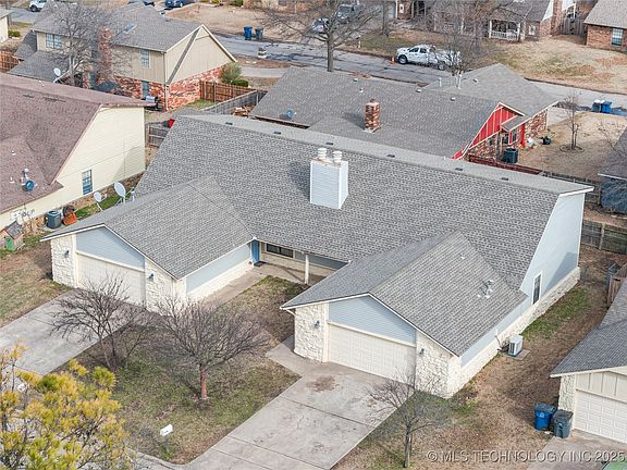 Excellent opportunity to own a spacious, updated duplex in the heart of Tulsa! 3 bedrooms and 2 full baths, oversized 2 car garages, and two living areas on each side. Large primary suite with two closets and private bath. Second bedroom on each side has a walk-in closet as well. Newer high efficiency HVAC systems on both sides (with transferrable warranty) installed in 2021 and new roof within the last 5 years. New paint inside and out, new vinyl siding, newly painted cabinets on one side, and new flooring. Walk-in floored attic with tons of extra storage space. Both bathrooms updated on vacant side. Both sides full of natural light and close to lots of shopping, restaurants, entertainment and only minutes from HWY 169 and I 44. Union Schools! Don't let this amazing opportunity to own a multi-family property pass you by.