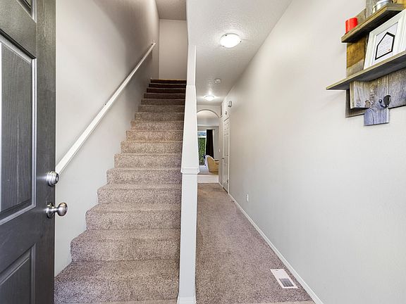 Move-in ready townhome with open layout on the main level. Living room has gas fireplace, pantry & stainless appliances in the kitchen, slider to the fenced patio with trees for privacy and fire pit. Upstairs you will find the master bedroom with large walk-in closet. Master bath features a double vanity and soaking tub. 2 additional bedrooms, hall bathroom and laundry room complete the upstairs. 1 block to the neighborhood block