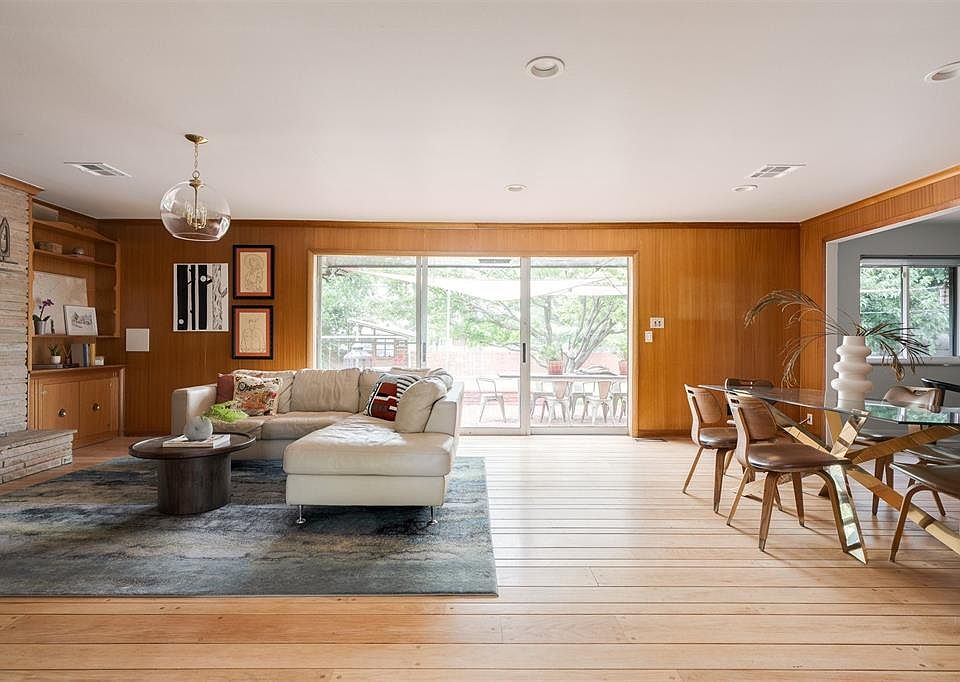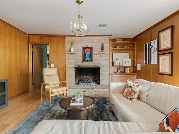 This 1955 Vintage ranch of your dreams is bursting with original character! A rare midcentury modern gem oozes curb appeal and features a fantastic floor plan for entertaining and daily life. An inviting porch welcomes guests into the spacious living room that is light and bright with original hardwood floors. Moving into the den you'll find glowing wood paneling and a stacked stone fireplace as well as sliding glass doors leading onto a shaded patio with a hot tub and a view of the sizable backyard. A dining space marks the transition from living area to the heart of this home. Subtly updated, this darling vintage kitchen combines both charm and convenience and features a breakfast nook and built-in bench seating along with original cabinetry. Three oversized bedrooms showcase gorgeous wood floors and streaming natural light. The primary bedroom is tucked away for privacy and features an updated ensuite bath. An indoor laundry room and two car garage round out the indoor amenities in this property. The generous, fully fenced backyard has a unique play area with swings as well as another conversation area across the grassy lawn from the patio. Freshly painted, numerous updates and move in ready make this one of Oklahoma City's best buys! Perfectly perched near both Hefner Parkway and NW Expressway, this location provides near instant access to a huge variety of shops, restaurants and entertainment. All kitchen app
