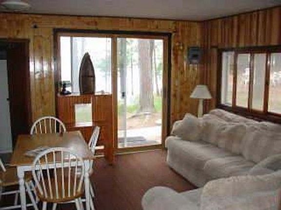 Year round 2 bedroom cabin located in a small quiet condominium development with 200 feet of prime sand frontage. Beautifully wooded setting with expansive lake views. Updates include new flooring, water lines and septic. Endless recreation and fabulous fishing on this two lake chain. Fully furnished for immediate enjoyment. A 12 x 30 garage space is included in the purchase price. The association fees are $75.00 per month.