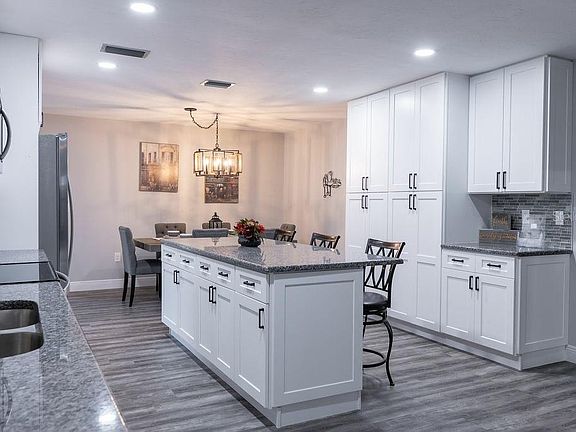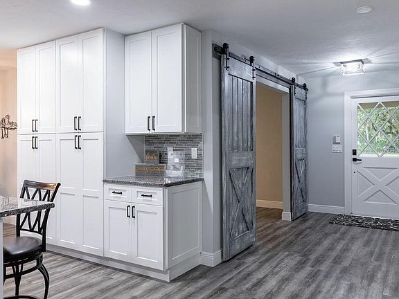 • Interior Features: Cathedral Ceiling(s), Ceiling Fans(s), High Ceiling(s), Living Room/Dining Room Combo, Master Bedroom Downstairs, Walk-In Closet(s), Open Floorplan, Solid Surface Counters, Solid Wood Cabinets, Eating Space In Kitchen, Kitchen/Family Room Combo, Stone Counters, Thermostat