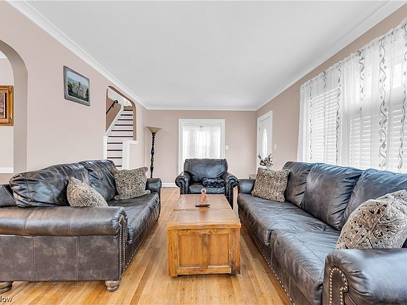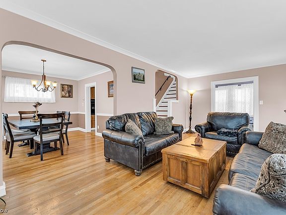 This beautiful single-family home has so much to offer! You are welcomed into the open living room featuring a brick fireplace, hardwood floors and a large picture window that allows for tons of natural light overlooking the front yard! Walk through to the formal dining room that has a large window allowing for more natural light! The dining room leads into the kitchen featuring tons of cabinet space! Continue upstairs where you can find 3 bedrooms complete with tons of closet space, large picture windows and hardwood floors! The full bathroom is also located upstairs featuring tiled walls and a bath/shower combination! The spacious finished basement is perfect for a rec room, playroom or additional living space! There is room for tons of storage, a separate laundry area and a convenient half bath! Outside you will find a detached 2 car garage! This home features central air! In the heart of Parma, this home is close to shopping, food, public transit and tons of community amenities! Th